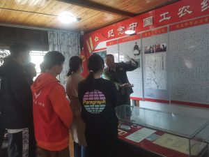 云梦队走入了香格里拉独克宗甸寨卡红色居民文化陈列馆,访谈红色人物——赵嘉林。八十多岁的赵老先生告诉云梦队,他创建独克宗甸寨卡红色居民文化陈列馆是为了把红军长征的精神和党的优秀事迹延续下去。他给云梦队讲述了红军长征路过香格里拉时,父亲赵阿印克服重重困难,为红军筹措20000余斤粮食的故事,以及红军与香格里拉各民族百姓之间的鱼水相融之情。“一张委任令,一枚五星’奖章‘,一只珍贵的肾形换药弯盘。”赵老先生和云梦队的队员在博物馆中与一件件见证历史的文物进行了一场深刻的对话。