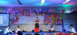 晚会以热情的开场舞拉开序幕,在精彩的小品、英语舞台剧、歌曲串烧、舞蹈表演和暖场游戏中走向高潮,以老师和观众的意犹未尽收尾。同学们在舞台上载歌载舞,尽情表演,赢得了老师们和观众们热烈的掌声。
