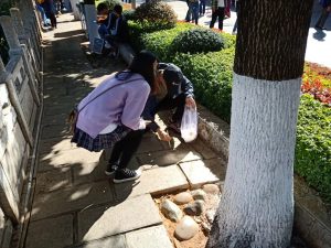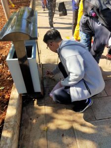 11月17日下午14:00,全体人员在翠湖西门集合。集合后,为确保志愿服务活动质量,志愿者们进行了环保知识交流共享和志愿服务培训,并分发环保清洁袋。紧接着,根据活动需要将参与人员分成几个志愿小组,分别前往翠湖公园的各个地方进行活动。每个志愿小组的志愿者们拿着环保清洁袋自西向东,将公园道路、草丛中的各种废弃塑料袋、果皮纸屑等生活垃圾捡到袋子里,并将其送到垃圾处理处,使景区环境得到了改善。