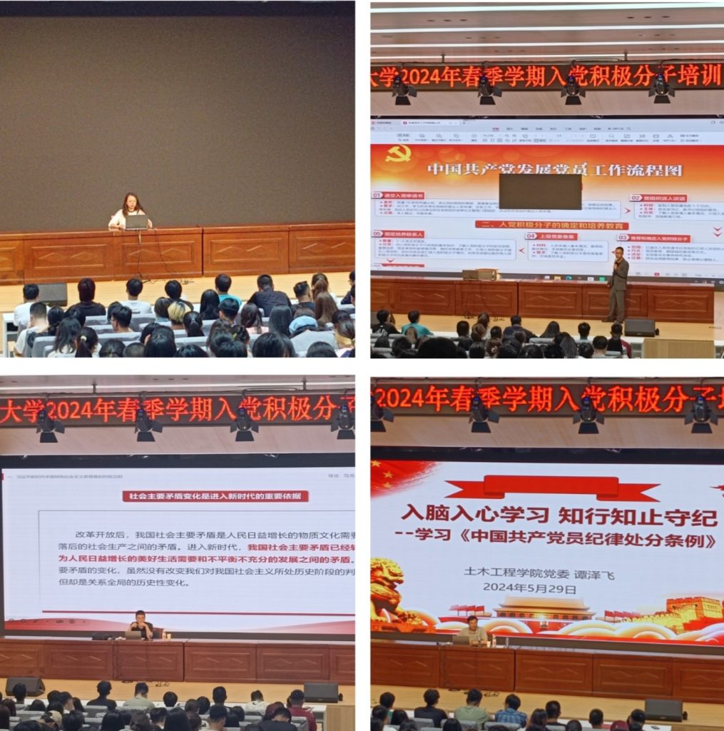 在此次培训过程中,培训讲师谭泽飞、陈盈希、陶正杰、邱润等同志,围绕《中国共产党章程》《中国共产党发展党员工作细则》《中国共产党纪律处分条例》以及习近平新时代中国特色社会主义思想等核心内容,为参训的入党积极分子进行了深入细致的讲解。讲师们从党的基本知识出发,逐步深入到党的理论体系、组织原则、纪律要求等方面,为入党积极分子提供了全面系统的党性教育和思想引领。