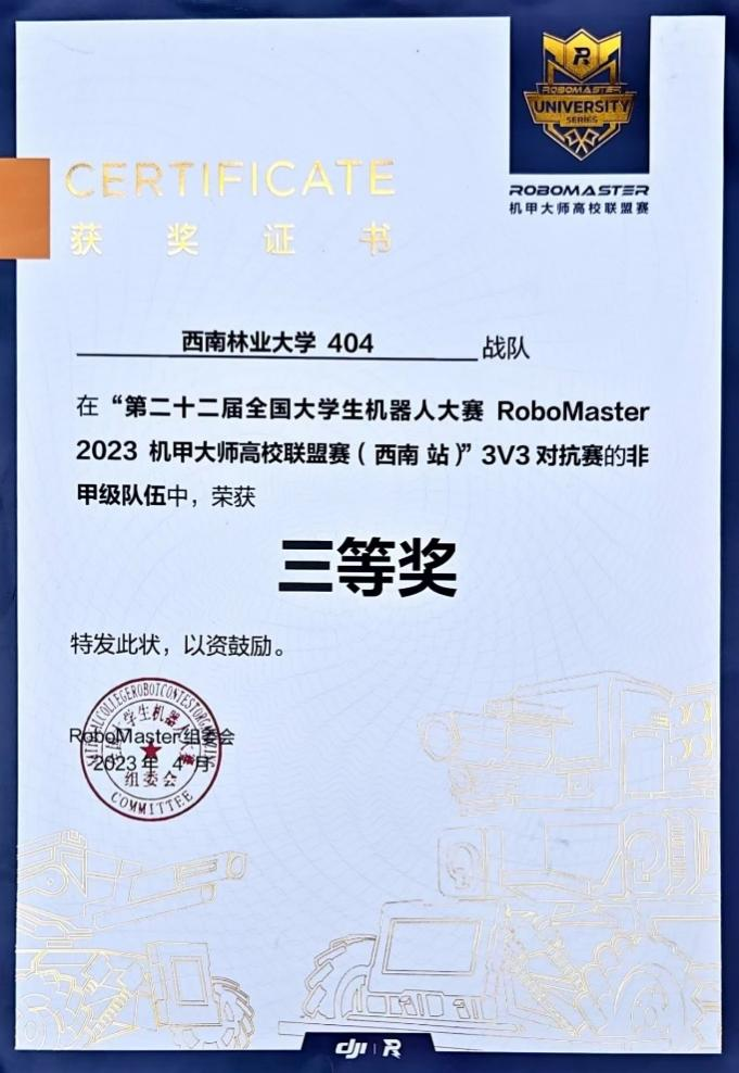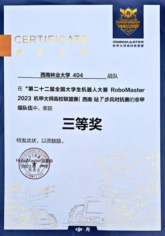 近日,第二十二届全国老员工机器人RoboMaster2023机甲大师高校联盟赛(西南站)在重庆举行。公司404机器人战队在钱良辉、徐国栋、杨洁、陈继飞老师的指导下,经过3天紧张激烈的对抗,闯入16强,获得三等奖2项。