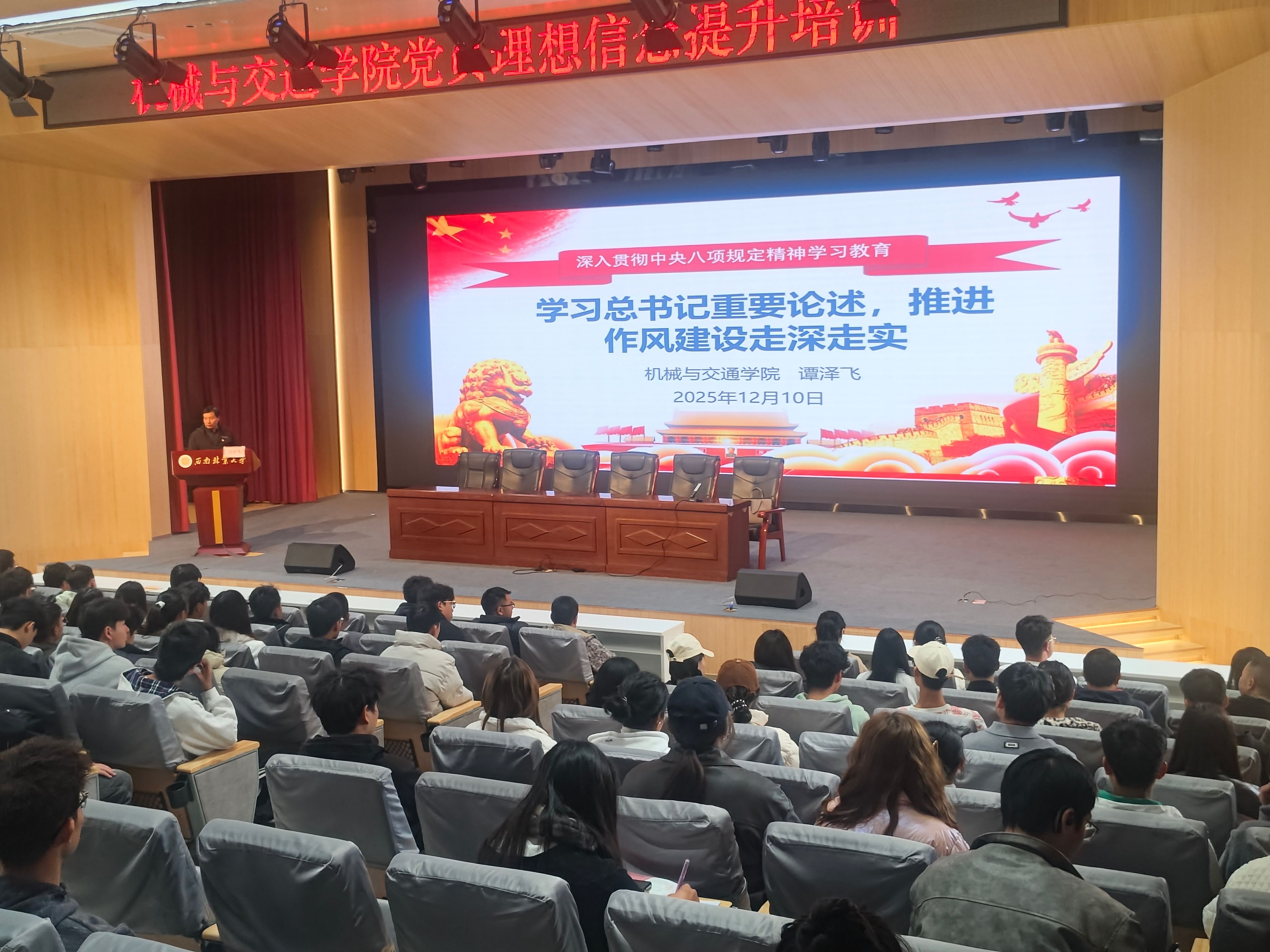 随后,谭泽飞同志“以规矩立身,以红色铸魂,做新时代‘四有’青年”为主题作专题报告。报告紧密围绕中央八项规定精神,结合工作实际,深入阐释了中央八项规定精神的鲜明特质与实践要求,引导广大党员进一步筑牢思想根基、严守纪律底线,永葆共产党员的政治本色。陶正杰同志则聚焦员工党员、入党积极分子及入党申请人的成长路径展开具体指导。