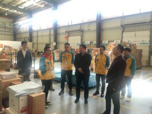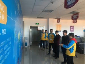 公司教师首先在人资经理刘明及四位员工杨程、顾怀涛、黄波、宋乔方的指引下,参观了公司配货区、员工生活区,了解配送设备、操作流程、员工生活环境等。