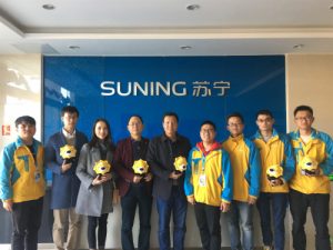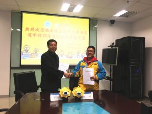 随后,双方针对校企合作、建立实习基地事宜开展了校企座谈,在此前双方交流座谈的基础上,滇南苏宁物流有限公司人资经理刘明与汽车与交通公司老师在会议室作了进一步交流洽谈。刘明经理结合视频着重介绍了苏宁控股集团、苏宁云仓、包装、配送等先进设备配置情况,介绍了公司的发展方向和人才培养机制。谭泽飞书记与刘明经理就校企合作的具体事宜进行了商讨并达成共识,包括就业招聘、人才培养、项目合作、支部共建等。双方签订了《就业实习基地协议》。